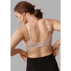 Der T-Shirt-Still-BH ist weich, glatt und bequem. Er ist nahtlos und seine Körbchen haben eine doppelte Stoffschicht und herausnehmbare Pads für eine schöne Silhouette. Der mitgelieferte BH-Verlängerer erleichtert die Anpassung der Unterbrustweite während der Schwangerschaft und Stillzeit. Ideal für alle, die eine mittlere bis große Unterbrustweite haben und ein mitteltiefes Körbchen wünschen.