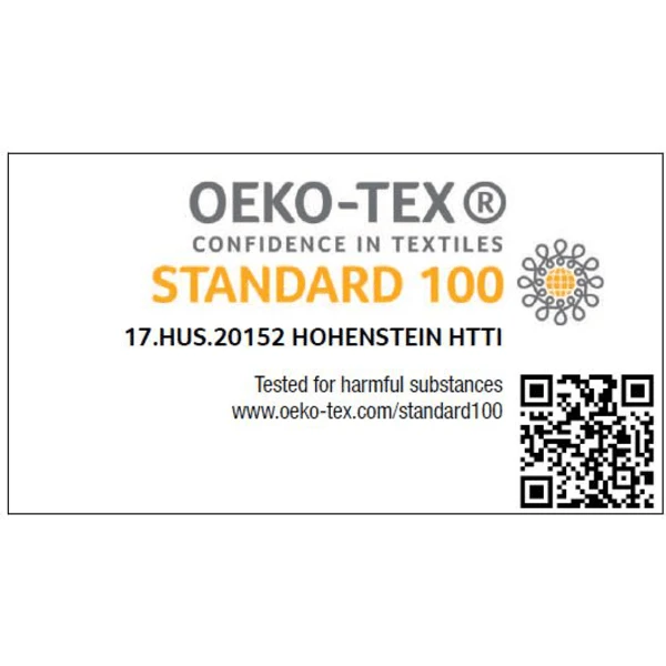 - OEKO-TEX® STANDARD 100: 17.HUS.20152, HOHENSTEIN HTTI