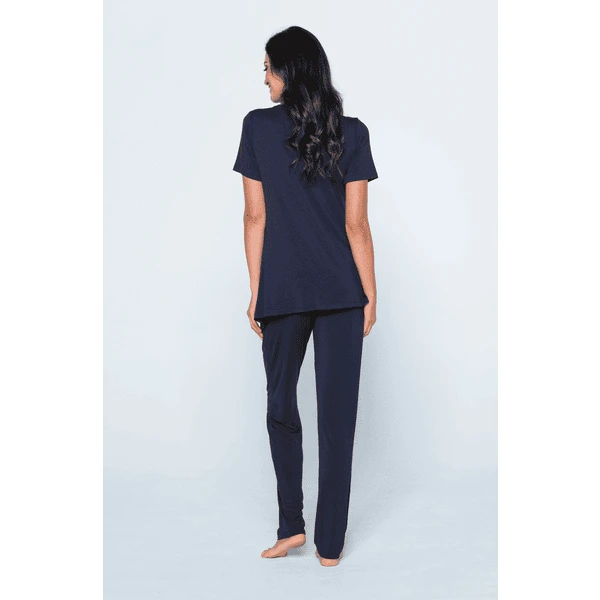 Asymmetrischer, weicher Nachtpyjama aus angenehmem Jersey. Dieser Pyjama wurde speziell für stillende Mütter entwickelt, funktioniert aber auch während der Schwangerschaft. Die Pyjamabluse hat einen speziellen Einsatz zum einfachen Füttern eines Babys – ohne Nickerchen, Reißverschlüsse und Knöpfe. Diese komfortable und zugleich diskrete Lösung wird jede stillende Mutter zu schätzen wissen. Die Hose hat einen hohen, elastischen Bund, der der werdenden Mutter einen angenehmen Tragekomfort bietet. Der Schlafanzug eignet sich gut zum Füttern Ihres Babys im Krankenhaus und zu Hause.