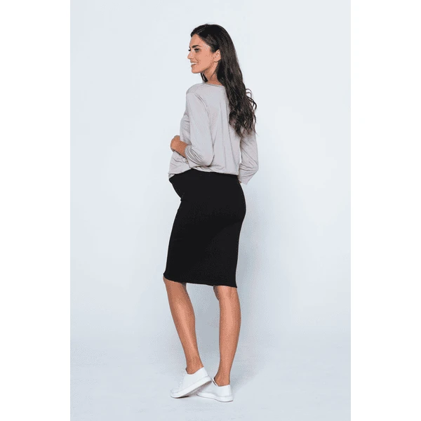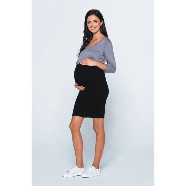 Schlauchrock mit hoher Taille, der sich während der Schwangerschaft dem wachsenden Bauch anpasst.