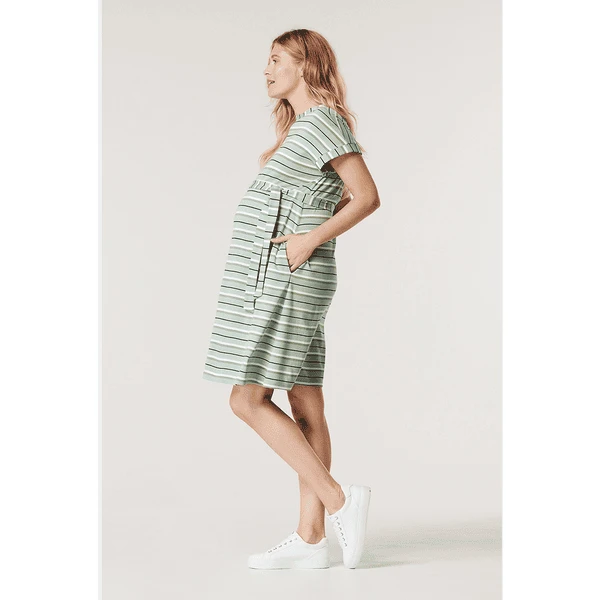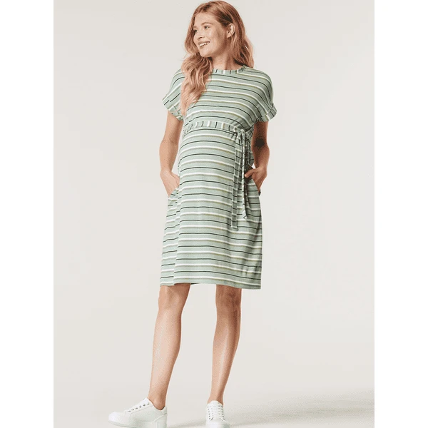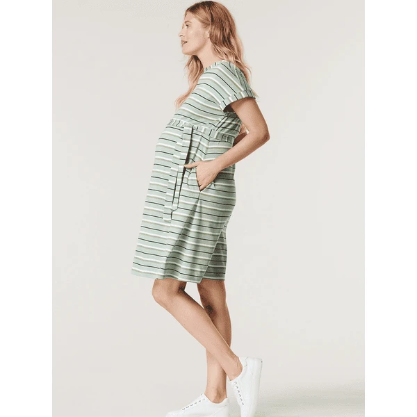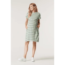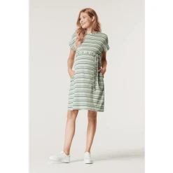 Lässiges gestreiftes Kleid aus der Esprit Maternity Kollektion. Das Kleid hat kurze Ärmel, eine Wickeloptik und eine Midilänge. Mit der passenden Kordel können Sie einen zusätzlichen Akzent auf Ihren wachsenden Bauch setzen. Wunderschön!Mit diesem Kleidungsstück treffen Sie nicht nur eine nachhaltigere Wahl für sich selbst, sondern auch für unseren Planeten. Dieses Kleid ist aus GOTS-zertifizierter Bio-Baumwolle hergestellt. Es ist nicht nur superweich für Sie, sondern entspricht auch hohen internationalen Produktions- und Umweltstandards. Mit GOTS-Baumwolle treffen Sie die beste Wahl für sich und die Welt. Von der umweltbewussten Herstellung der Baumwolle bis hin zu den Arbeitsbedingungen erfüllt alles hohe Standards. Und es ist wirklich schön zu tragen!