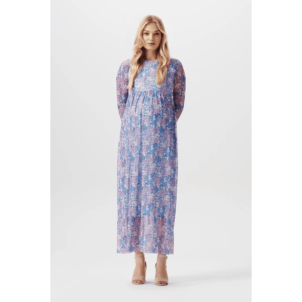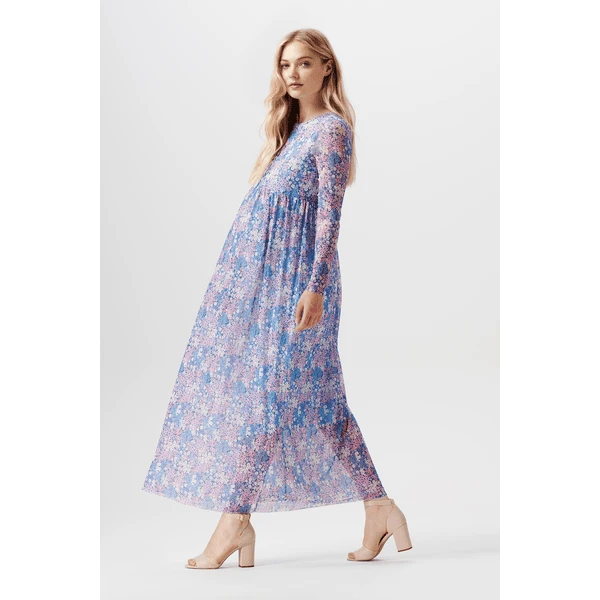 In diesem wunderschönen Esprit Maternity Kleid wirst du strahlen! Das Kleid hat einen Allover-Print mit transparenten Ärmeln und einen voluminösen, transparenten Rock. Das Kleid ist doppellagig und hat ein eng anliegendes Unterkleid, das deine Arme und Waden frei lässt. Der Gummizug in der Taille betont nicht nur deinen wachsenden Bauch, sondern sorgt auch für hohen Tragekomfort.