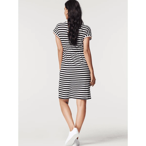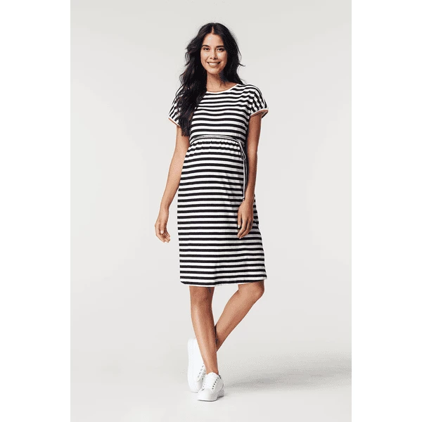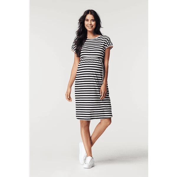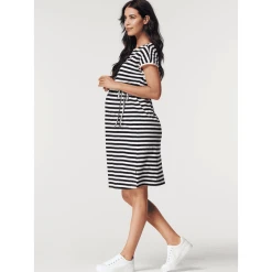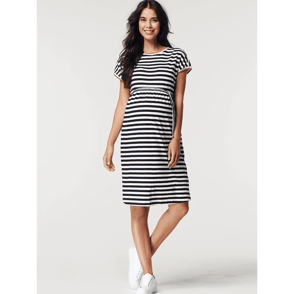 Tolles Streifenkleid von Esprit Maternity mit einem bunten Akzentstreifen am Ausschnitt und Schlitzen unten. Das Kleid hat einen Gummizug, der für zusätzlichen Komfort sorgt und Ihren wachsenden Bauch betont. Mit dem Schleifenband können Sie Ihre Schwangerschaftstaille zusätzlich betonen.Wir haben dieses Kleid in mehreren Farben.Dieses Kleid ist aus GOTS-zertifizierter Bio-Baumwolle hergestellt. Das ist nicht nur superweich für Sie, sondern entspricht auch hohen internationalen Standards für Produktion und Umwelt. Mit GOTS-Baumwolle treffen Sie die beste Wahl für sich, Ihr Kind und die Welt. Von der umweltbewussten Herstellung der Baumwolle bis hin zu den Arbeitsbedingungen entpsricht alles hohen Standards. Und: es ist schön zu tragen!