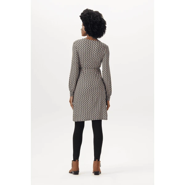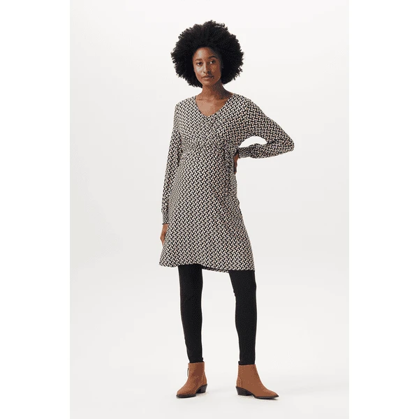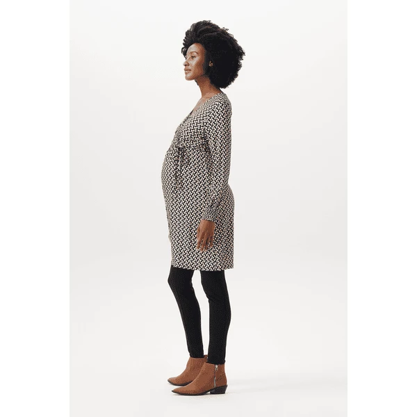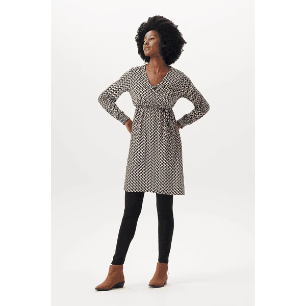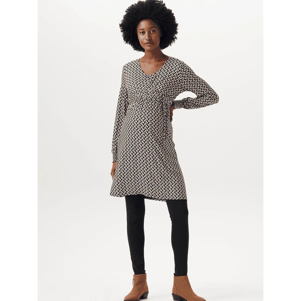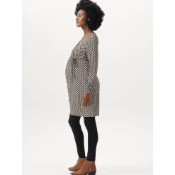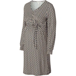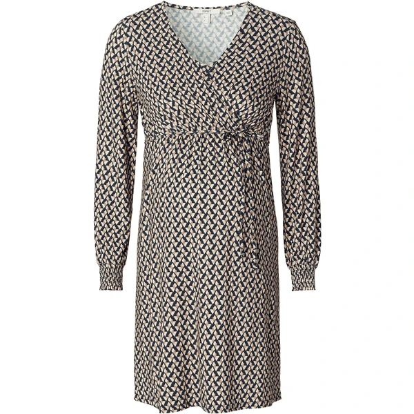 Hübsches Kleid mit V-Ausschnitt und Allover-Print aus der Esprit Maternity Kollektion. Das Kleid hat einen Bund mit Schleife, so dass deine schwangere Form extra zur Geltung kommt. Und auch nach deiner Schwangerschaft wirst du es oft tragen, denn es ist auch zum Stillen geeignet. Wir möchten dir das Stillen so einfach und angenehm wie möglich machen. Bei diesem Kleidungsstück musst du nur die diagonale Lage zur Seite ziehen und die untere Lage anheben, um dein Baby diskret zu stillen. Die Vorderseite ist etwas länger, so dass die Vorder- und Rückseite auf gleicher Höhe sind. Das sieht nicht nur hübsch aus, du fühlst dich darin auch wohler.