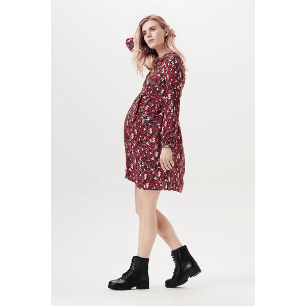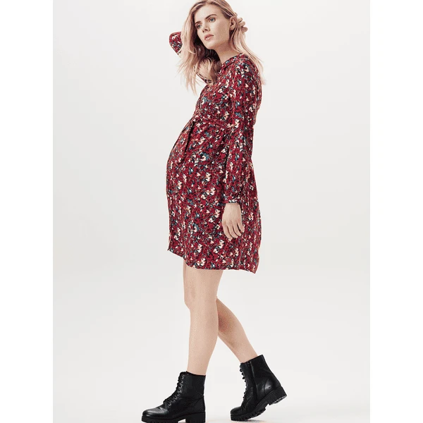 Stylisches Kleid mit Blumenmuster aus der Esprit Maternity Kollektion. Das Kleid hat einen Allover-Print und einen Bund mit Schleifenband, hallo schöne Figur! Der schöne gewebte Stoff sorgt für einen schmeichelhaften Effekt. Wir möchten dir das Stillen so angenehm wie möglich machen. Deshalb hat das Kleid ein tailliertes Unterkleid mit Spaghetti-Trägern und einhändig zu öffnenden Clips. Nach dem Öffnen faltest du den Stoff nach unten. Das macht das Stillen einfach und diskret. Die Vorderseite ist etwas länger, so dass die Vorder- und Rückseite auf gleicher Höhe sind. Das sieht nicht nur schön aus, du fühlst dich darin auch wohler.