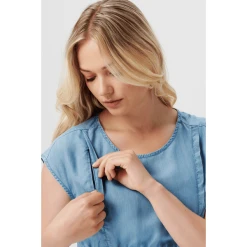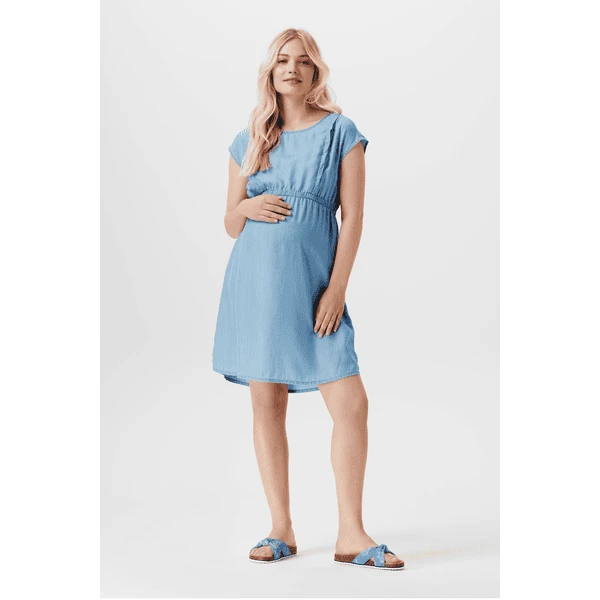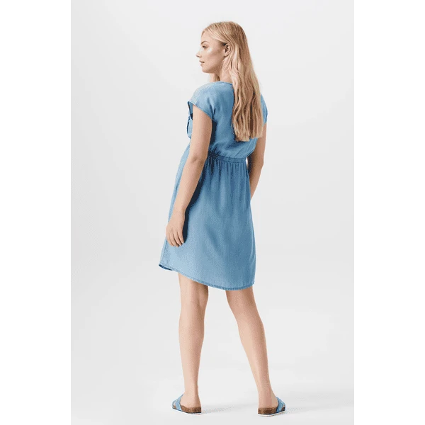 Voluminöses Kleid im Denim-Look aus der Esprit Maternity Kollektion. Das Kleid hat kurze Ärmel und einen Gummibund für zusätzlichen Komfort. Perfekt für warme Frühlings- und Sommertage. Wir möchten dir das Stillen so einfach und angenehm wie möglich machen. In der Naht befindet sich ein praktischer Reißverschluss, den du nach oben oder unten ziehen kannst. Du kannst sofort mit dem Stillen beginnen, denn es gibt keine Stilleinlage darunter. Die Vorderseite ist etwas länger, so dass die Vorder- und Rückseite auf gleicher Höhe sind. Das sieht nicht nur gut aus, sondern sorgt auch dafür, dass du dich besser fühlst. Dieses Kleidungsstück besteht zu mindestens 50% aus LENZING™ TENCEL™ Lyocell. Lyocell ist nicht nur sanft zur Haut, sondern auch besser für die Umwelt. Dieser Stoff wird aus Zellstoff hergestellt, der aus nachhaltig bewirtschafteten Wäldern stammt. Die Produktion dieses Stoffes hat nur minimale Auswirkungen auf die Umwelt, da ein geschlossenes System verwendet wird: Die während des Produktionsprozesses benötigten Lösungsmittel werden jedes Mal wiederverwendet. So kannst du dir sicher sein, dass du mit diesem Kleidungsstück eine bewusste Entscheidung für dich und die zukünftige Generation triffst.