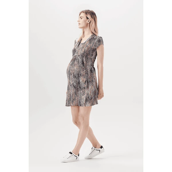 Fröhlich bedrucktes Kleid aus der Esprit Maternity Kollektion. Das Kleid hat kurze Ärmel und einen doppellagigen V-Ausschnitt mit plissiertem Dekolleté. Der elastische Bund sorgt für hohen Tragekomfort. Mit der passenden Kordel setzen Sie einen zusätzlichen Akzent auf Ihren wachsenden Bauch.Wir möchten Ihnen das Stillen so einfach und angenehm wie möglich machen. Bei diesem Kleidungsstück müssen Sie nur die diagonale Lage zur Seite ziehen und die untere Lage anheben, um Ihr Baby diskret zu stillen.Sie lieben den Aufdruck? Wir haben es auch als Top, Shorts und Maxikleid. Etwas für Sie?Ecovero ist ein nachhaltiges Viskosegewebe mit den geringsten Umweltauswirkungen. Damit treffen Sie also eine sehr bewusste Entscheidung. Ecovero ist der neue Standard für umweltfreundliche Viskose.LENZING™ und ECOVERO™ sind Warenzeichen der Lenzing AG.