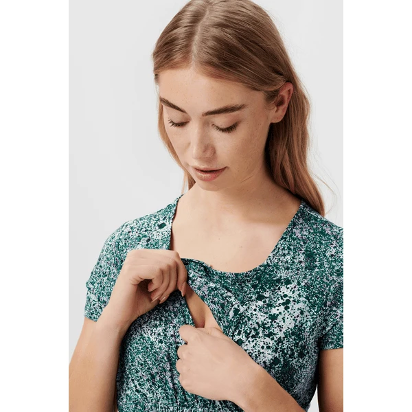 In diesem tollen Sommerkleid von Esprit kommst du gut durch die heißen Tage! Das Kleid hat einen V-Ausschnitt mit Überschlag zum Stillen und einen Gummibund für zusätzlichen Komfort. Und wie hübsch ist dieser All-Over-Print? Mit der passenden Schleife kannst du einen zusätzlichen Akzent auf deinen wachsenden Bauch setzen. Wir möchten dir das Stillen so einfach und angenehm wie möglich machen. Bei diesem Kleidungsstück musst du nur die diagonale Lage zur Seite ziehen und die untere Lage anheben, um dein Baby diskret zu stillen. Die Vorderseite ist etwas länger, so dass die Vorder- und Rückseite auf gleicher Höhe sind. Das sieht nicht nur gut aus, sondern sorgt auch dafür, dass du dich besser fühlst. Dieses Kleidungsstück besteht zu mindestens 50% aus LENZING™ ECOVERO™. LENZING™ ECOVERO™ ist ein nachhaltiger Viskosestoff. Es wird aus Zellstoff und Holz aus nachhaltig bewirtschafteten Wäldern hergestellt. Während des Produktionsprozesses werden die CO2-Emissionen und der Wasserverbrauch im Vergleich zum herkömmlichen Verfahren um 50% reduziert. Außerdem wird das gesamte verwendete Wasser gereinigt, bevor es in die Natur zurückgeführt wird. So kannst du dir sicher sein, dass du mit diesem Kleidungsstück eine bewusste Entscheidung für dich und die zukünftige Generation triffst.