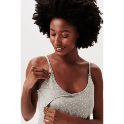 Schönes Pyjama-Set aus der Esprit Maternity Kollektion. Das Set besteht aus Shorts, die du unter dem Bauch trägst, und einem Unterhemd. Der Sternenaufdruck ist eine schöne Anspielung auf die Nacht. Dank der Clips ist das Oberteil auch zum Stillen geeignet. Angenehm zu tragen während der Schwangerschaft, aber auch ideal für die Zeit danach! Wir möchten dir das Stillen so angenehm wie möglich machen. Genau wie dein Lieblings-Still-BH hat auch dieses Kleidungsstück einen praktischen Träger mit Clip. Nach dem Öffnen faltest du den Stoff nach unten. Das macht das Stillen einfach und diskret. Bevorzugst du lange Hosen und ein Hemd zum Schlafen? Oder bevorzugst du ein Nachthemd? Die haben wir auch für dich! Mit diesem Kleidungsstück triffst du nicht nur eine nachhaltigere Wahl für dich, sondern auch für unseren Planeten. Dieser Artikel ist aus GOTS-zertifizierter Bio-Baumwolle hergestellt. Es ist nicht nur superweich für dich oder dein Kind, sondern entspricht auch hohen internationale Produktions- und Umweltstandards. Mit GOTS-Baumwolle triffst du die beste Wahl für dich, dein Kind und die Welt. Von der umweltbewussten Produktion der Baumwolle bis hin zu den Arbeitsbedingungen entspricht alles hohen Standards. Und es ist wirklich schön zu tragen!