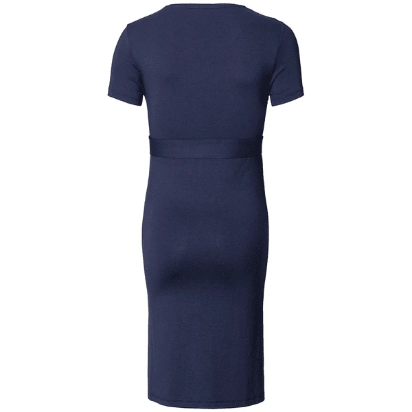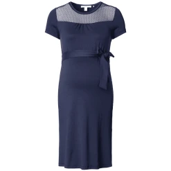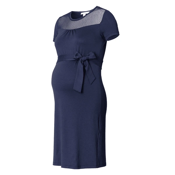 Elegantes Umstandskleid von Esprit for Mums aus weich fließendem, glänzendem Material mit halbtransparentem Spitzeneinsatz am Ausschnitt. Mit dem Gürtel hoch in der Taille getragen lässt sich der Babybauch besonders schön zur Geltung bringen.