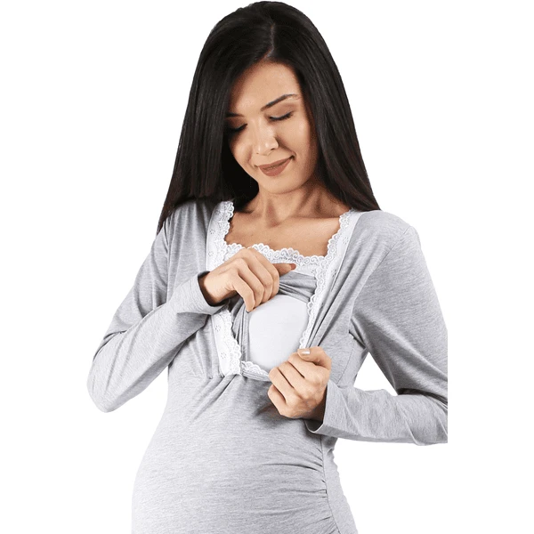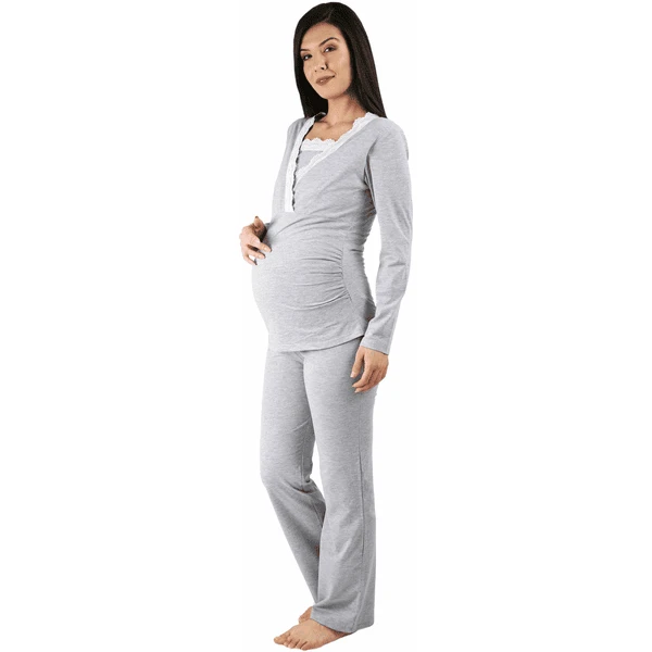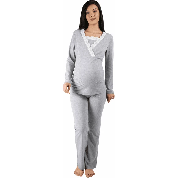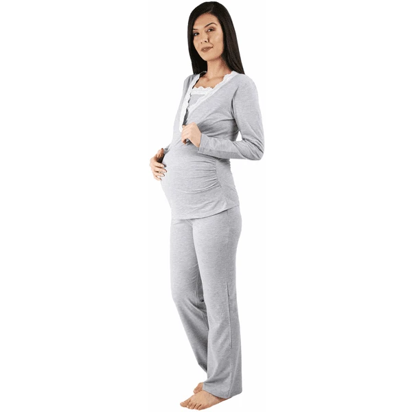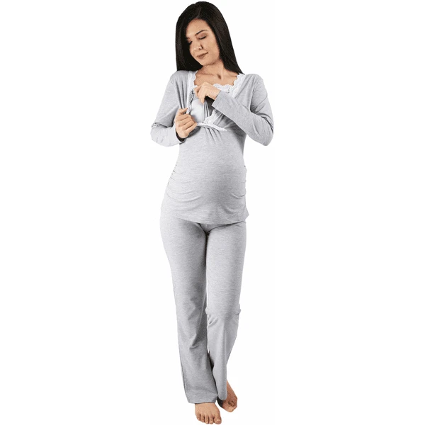 M.M.C. Umstandsschlafanzug Set Spitze Umstandspyjama mit Stillfunktion Grau