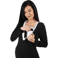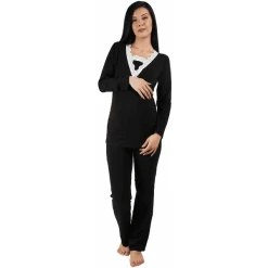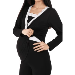 M.M.C. Umstandsschlafanzug Set Spitze Umstandspyjama mit Stillfunktion Schwarz