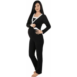 Schwangerschaft Still-Schlafanzug mit Spitze Detail der Marke M.M.C. Mit unserer Umstands-Nachtwäsche können Sie sich modisch und trotzdem bequem fĂĽhlen, in den Fluren der Entbindungsstation entlang laufen und Ihr Neugeborenes bequem stillen. Es ist schön genug, um Ihre Besucher zu treffen, wenn Sie im Krankenhaus oder zu Hause sind. Das Schlafanzug besteht aus einem zweilagigen Stoff am Ausschnitt. Der zweite Stoff verdeckt den Zierausschnitt und erleichtert der Mutter das Stillen. Durch die Stofföffnung ermöglicht das Stillshirt einen leichten Zugang zur Brust, ohne sich vollständig ausziehen zu mĂĽssen. Somit ist die Brust vollständig in Kontakt mit dem Baby und der Bauch und die Taille bleiben während dem Stillen verdeckt. Das Oberteil verfĂĽgt ĂĽber einen modischen Ausschnitt in Wickel-Optik, der das nächtliche Stillen erleichtert. Der weiche Oberbauchbund der Hose passt sich dem wachsenden Babybauch individuell an.Eigenschaften:- Moderne elegante Spitze Details am Kragen – Pyjama kann während der Schwangerschaft und während der Stillzeit getragen werden – Rundhalsausschnitt – Langarm Oberteil und lange Hose mit Bauchbund- Stillöffnungen an beiden Brustseiten – Zweilagig mit verdecktem Zierausschnitt – Marke: M.M.C. – Material: 95% Baumwolle und 5% Elasthan. Die fĂĽr das Stillpyjama verwendete erstklassige Baumwolle behält auch nach vielen Wäschen die Form.