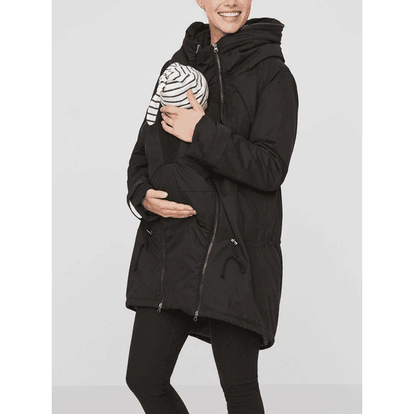 Warm gefĂĽtterte Umstandsjacke mit doppeltem ReiĂźverschluss, regulierbarer