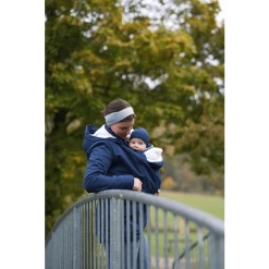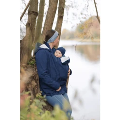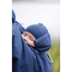unter die Jacke passt. Dabei ist es egal, in welcher Tragehilfe das Kind sitzt,