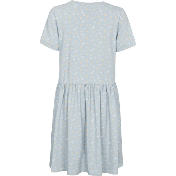 Dieses weiche Mum-Kleid ist aus einer weichen Jersey-Qualität hergestellt. Das Kleid hat kurze Ärmel und ist ab der Hüfte ausgestellt. Es verfügt über einen Druck aus weiß, gelb und rosa Gänseblümchen auf einem hellblauen Untergrund. Mit diesem hübschen Kleid kommen auch die Mamas neben ihren Töchtern in den Genuss unserer schönen Drucke. Dem perfekten Mini Me-Look steht so nichts mehr im Weg. GOTS Standard. Zertifizert durch Ecocert Greenlife Lic. No. 152033 Das Produkt ist GOTS Organic zertifiziert. Dies ist aktuell der höchste Standard für Bekleidung. Alle Produktionsprozesse wie Färben, Weben und Nähen werden unter strengsten Vorgaben mit Rücksicht auf die Umwelt durchgeführt. Auch die Arbeitsbedingungen werden während der einzelnen Produktionsschritte streng überwacht. Baumwolle 95%, Elasthan 5%