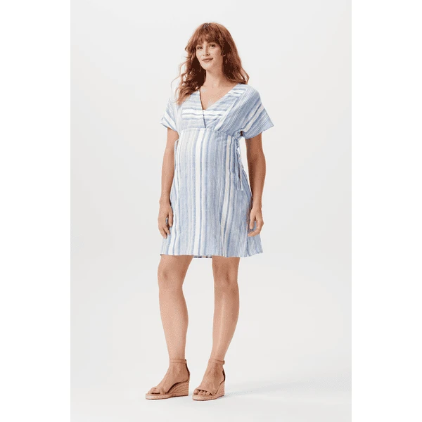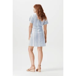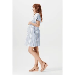 Ein Tag am Meer? Das Kleid Delhi von Noppies Maternity ist ein ideales Strandkleid. Das Kleid mit Streifenmuster hat eine lässige, lockere Passform und besteht aus einem leichten Stoff, so dass es sanft um deinen Schwangerschaftsbauch fällt.Wenn du die Fliege in der Taille enger ziehst, kreierst du eine weibliche Silhouette. Kombiniere dazu Slipper oder Sandalen für einen besonders sommerlichen Look.