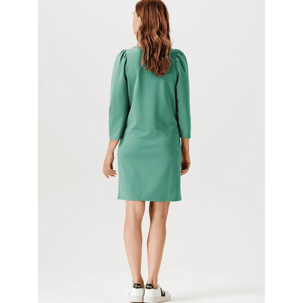 Dieses Kleid ist ein absolutes Lieblingsstück! Das Kleid Omaha hat eine bequeme Passform und eine Midi-Länge. Das Kleid ist aus einem weichen, dehnbaren Stoff gefertigt und sehr angenehm zu tragen. Die überschnittenen Schultern sorgen für ein verspieltes Augenzwinkern. Die Vorderseite ist etwas länger, so dass Vorder- und Rückseite auf gleicher Höhe liegen. Das sieht nicht nur gut aus, sondern gibt Ihnen auch ein besseres Gefühl. Dieses Kleid ist aus ECOVERO™ gefertigt, einem nachhaltigen Viskosestoff mit den geringsten Umweltauswirkungen. Sie treffen also eine sehr bewusste Entscheidung. Ecovero ist der neue Standard für umweltfreundliche Viskose.