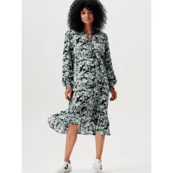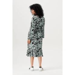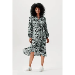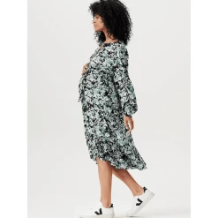 Das Kleid Overlea hat einen Allover-Print und Rüschen am Rock für einen schmeichelhaften Effekt. Das Kleid hat eine Schleife am Halsausschnitt und elastische Bündchen, die einen dezenten Puff-Effekt erzeugen. Mit dem Taillenband betonst du deine schwangere Figur. Das Kleid ist aus weicher, dehnbarer Viskose gefertigt. Schön zu tragen während und nach deiner Schwangerschaft! Die Vorderseite ist etwas länger, so dass die Vorder- und Rückseite auf gleicher Höhe sind. Das sieht nicht nur schön aus, sondern sorgt auch dafür, dass du dich wohler fühlst.