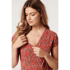Zeigen Sie Bein in diesem fröhlichen Kleid aus der Noppies Kollektion. Das Kleid Marvell hat einen tiefen V-Ausschnitt mit Wickelausschnitt, kurze Ärmel und eine Länge bist über das Knie. Mit dem passenden Schleifenband setzen Sie einen zusätzlichen Akzent auf Ihren wachsenden Bauch, schön!Wir möchten Ihnen das Stillen so einfach und angenehm wie möglich machen. Sie können darin sofort mit dem Stillen beginnen, da Sie den Stoff nur zur Seite schieben müssen. Darunter befindet sich keine separate Stilleinlage.Mehr tolle Artikel mit diesem Print? Wir haben auch ein schönes Maxikleid!Dieser Artikel ist aus LENZING™ ECOVERO™ hergestellt, dies ist ein nachhaltiger Viskosestoff mit der geringsten Umweltbelastung. Sie treffen also eine sehr bewusste Entscheidung. LENZING™ ECOVERO™ ist der neue Standard bei umweltfreundlicher Viskose.