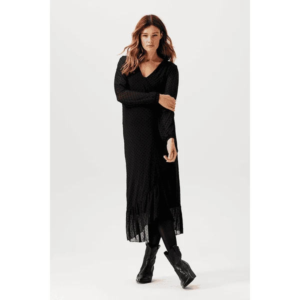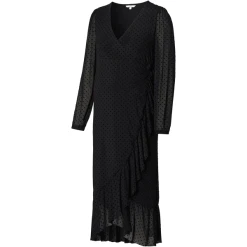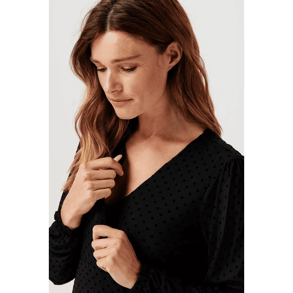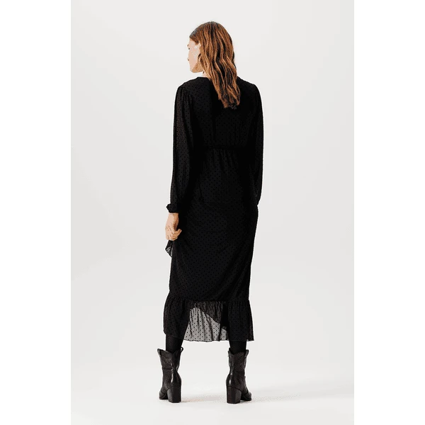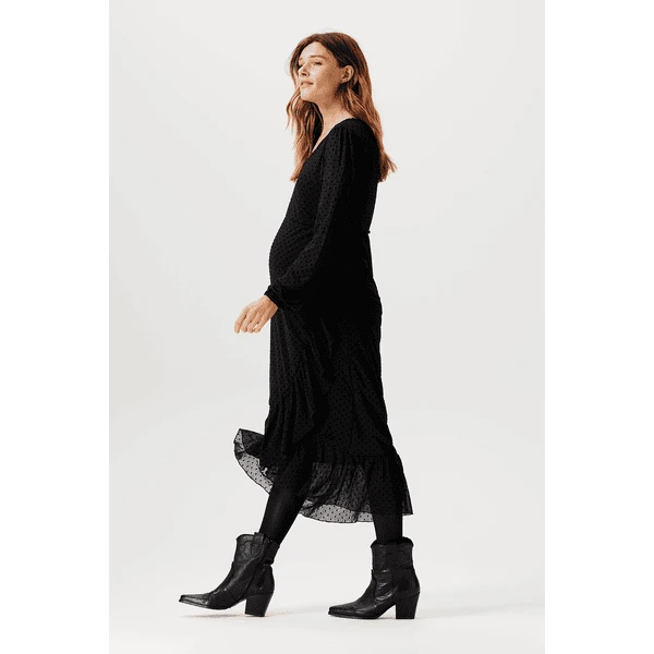 Schönes gepunktetes Maxi-Stillkleid aus der Noppies Maternity Kollektion. Das Kleid Olathe ist aus einem geschmeidigen Mesh-Stoff gefertigt, der sich anmutig um deinen Körper legt. Die Rüschen machen es besonders schmeichelhaft. Das Kleid hat einen Wickelausschnitt mit Kordel, der nicht nur deine schwangere Figur betont, sondern es auch ermöglicht, darin zu stillen. Dank des dehnbaren Unterkleides ist der Stoff nur an den Puffärmeln transparent. Wunderschön! Wir wollen dir das Stillen so einfach und angenehm wie möglich machen. Bei diesem Kleidungsstück kannst du sofort mit dem Stillen beginnen, da du den Stoff nur zur Seite schieben musst. Darunter befindet sich keine separate Stilleinlage. Die Vorderseite ist etwas länger, so dass die Vorder- und Rückseite auf gleicher Höhe sind. Das sieht nicht nur gut aus, sondern gibt dir auch ein besseres Gefühl. Dieses Kleid ist in verschiedenen Farben und Prints erhältlich. Welches ist dein Favorit?