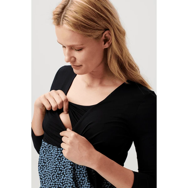 Das perfekte Kleid für einen festlichen Anlass! Das Kleid Olney von Noppies Maternity bringt deinen Schwangerschaftsbauch dank der taillierten Form schön zur Geltung. Die Seitennähte sind in Falten gelegt, damit dein Bauch genügend Platz hat, um zu wachsen, und durch den Bindegurt entsteht eine schöne Taille. Nach der Schwangerschaft kannst du dieses schöne Kleid weiter tragen, auch wenn du stillst. Wir möchten dir das Stillen so einfach und angenehm wie möglich machen. Bei diesem Kleidungsstück musst du nur die diagonale Lage zur Seite ziehen und die untere Lage anheben, um dein Baby diskret zu füttern. Die Vorderseite ist etwas länger, so dass die Vorder- und Rückseite auf gleicher Höhe sind. Das sieht nicht nur gut aus, sondern sorgt auch dafür, dass du dich wohler fühlst. ECOVERO™ ist ein nachhaltiger Viskosestoff mit der geringsten Umweltbelastung. Du triffst also eine sehr bewusste Entscheidung. Ecovero ist der neue Standard für umweltfreundliche Viskose.
