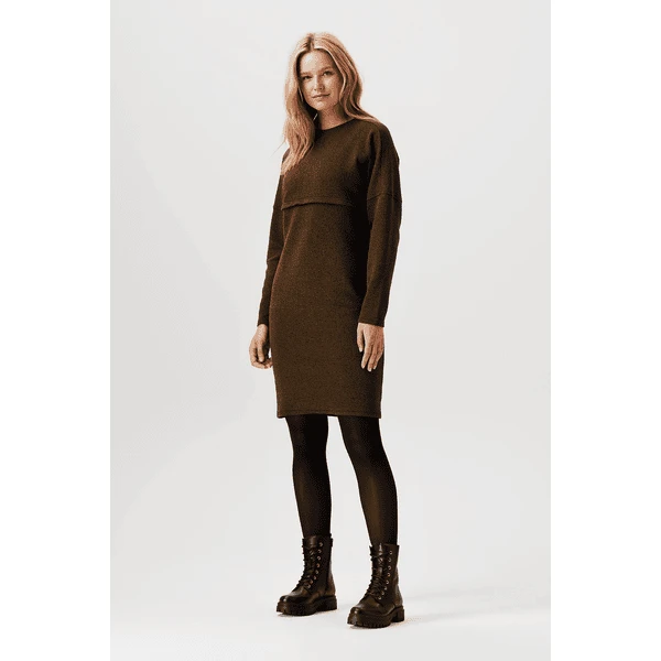 Stylisches, eng anliegendes Kleid aus der Noppies Maternity Kollektion. Das Kleid Riva ist doppellagig, wodurch es auch zum Stillen geeignet ist. Der schöne Stoff ist schön weich und dehnbar, was es sehr angenehm zu tragen macht. Wir möchten dir das Stillen so einfach und angenehm wie möglich machen. Bei diesem Artikel musst du nur die horizontale Schicht hochziehen – die obere. Das Unterhemd ist ein Hemd mit einem weiten Ausschnitt, den du einfach nach unten schieben kannst.