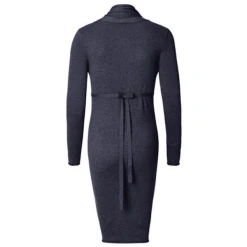 Umstandskleid Zara von Noppies mit Schalkragen und hoher Taille in elegant gedrehter Optik. Der eingezogene Bindegürtel kann am Rücken gebunden werden.