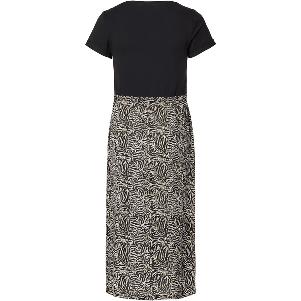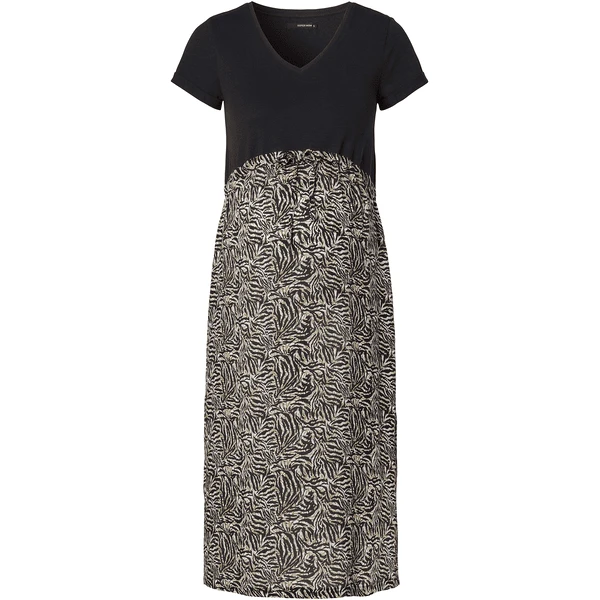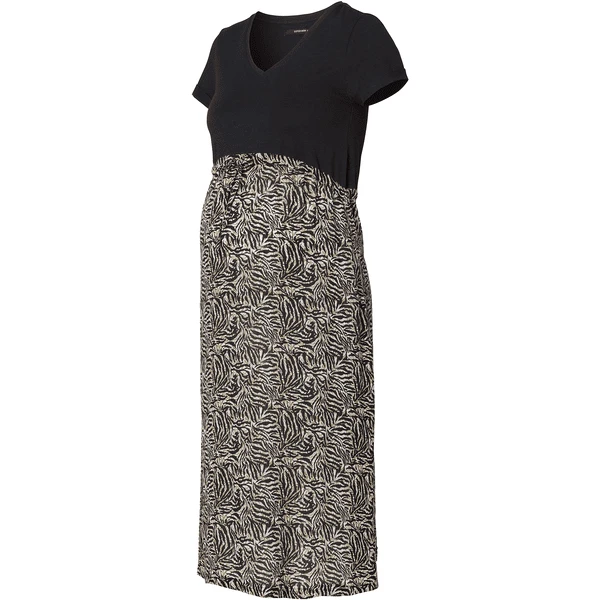 Niedliches Supermom-Kleid mit dehnbarem Mieder mit V-Ausschnitt und ausgestelltem Rock mit Palmenmotiv. Das Kleid hat hochgekrempelte Ärmel und eine Taille mit Schleife, die Ihre schwangere Figur zusätzlich betont. Der luftige Viskosestoff ist an warmen Tagen sehr angenehm zu tragen!Das Vorderteil des Kleides ist etwas länger, so dass Vorder- und Rückenteil auf gleicher Höhe sind. Das sieht nicht nur hübsch aus, sondern gibt Ihnen auch ein angenehmes Gefühl.