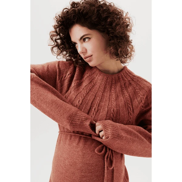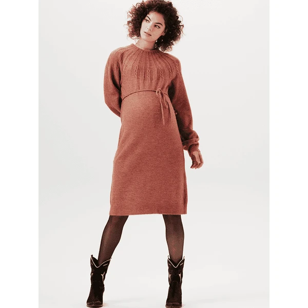 In diesem angenehm weichen Kleid aus der Supermom Kollektion wirst du die kälteren Monate gut überstehen. Kleid Cordale hat einen kleinen Kragen und ein schönes Zopfmuster auf der Vorderseite. Mit der passenden Schleife setzt du einen zusätzlichen Akzent auf deinen wachsenden Bauch. Der dehnbare Stoff macht es sehr angenehm zu tragen. Die Vorderseite ist etwas länger, so dass die Vorder- und Rückseite auf gleicher Höhe sind. Das sieht nicht nur schön aus, sondern gibt dir auch ein besseres Gefühl.