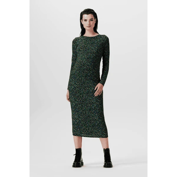 Mach dich schick in diesem Supermom Kleid. Das Kleid Enfield hat einen verspielten Punktedruck und einen Bootsausschnitt. Dank der engen Bodycon-Passform kommt deine schwangere Figur wunderbar zur Geltung. Der weiche Stretchstoff ist angenehm zu tragen. Die Falten um den Bauch und die Taille sorgen für zusätzlichen Komfort. Diese spezielle Nähtechnik sorgt dafür, dass dein Bauch zusätzlichen Platz zum Wachsen hat. Wunderbar bequem! Mehr tolle Sachen mit diesem Print? Es ist auch als Oberteil erhältlich! Die Vorderseite ist etwas länger, so dass die Vorder- und Rückseite auf gleicher Höhe sind. Das sieht nicht nur schön aus, du fühlst dich darin auch wohler.
