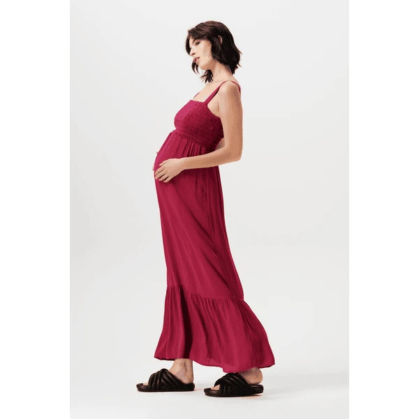 Schönes, luftiges Supermom-Kleid, perfekt für heiße Tage. Das Kleid Harvey hat einen quadratischen Ausschnitt, eine normale Passform und ein gesmoktes Mittelteil, das deine schöne schwangere Figur zusätzlich betont.Die längere Länge schafft eine schöne sommerliche Silhouette. Du kannst es auch nach der Schwangerschaft weiter tragen.