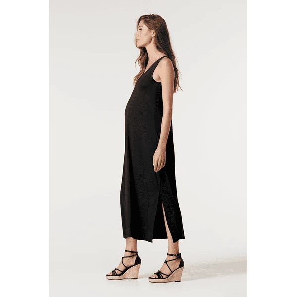 Geschmeidiges Maxikleid aus der Supermom-Kollektion. Dieses schöne, ärmellose Kleid fällt bis zu den Knöcheln und hat Bundfalten am Rücken. Sie können das Kleid locker um Ihren Körper hängen lassen oder einen Gürtel verwenden, um Ihre Schwangerschaftsfigur zu akzentuieren. An einem warmen Sommertag wunderbar zu tragen!Mit diesem Kleidungsstück treffen Sie nicht nur eine nachhaltigere Wahl für sich selbst, sondern auch für unseren Planeten. Dieses Oberteil ist aus umweltfreundlicher Baumwolle hergestellt, der Better Cotton Initiative. Das tut nicht nur Ihnen gut, sondern ist auch besser für die Umwelt und die Hersteller. Die Better Cotton Initiative ist ein spezielles Schulungsprogramm für Landwirte, um die Baumwollproduktion nachhaltiger zu gestalten. Dank der BCI lernen sie zum Beispiel, wie man Baumwolle mit weniger Wasser, Chemikalien und Pestiziden produziert.