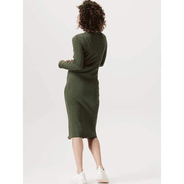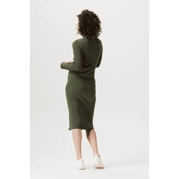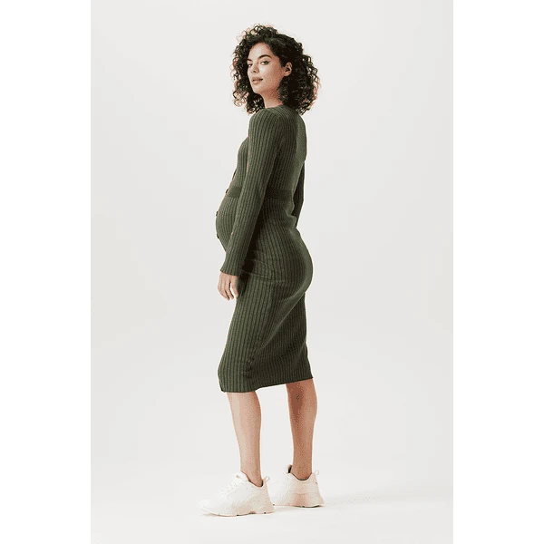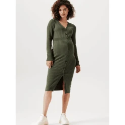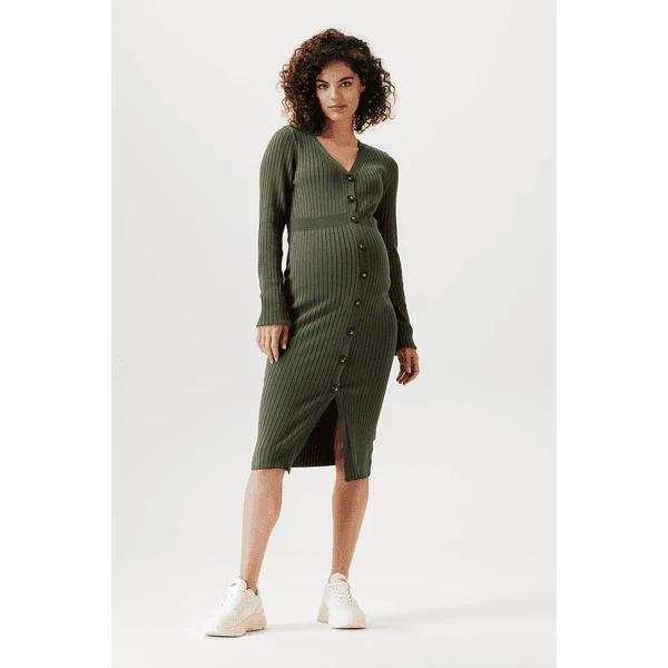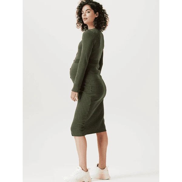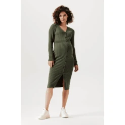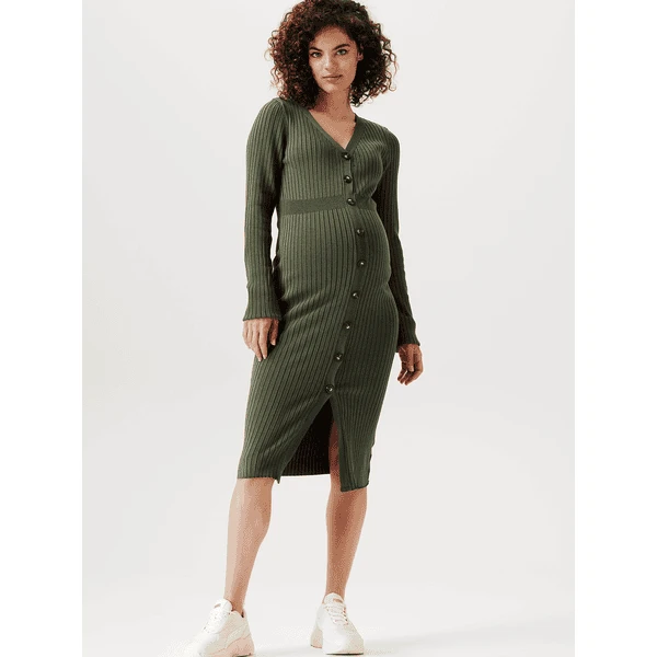 Wie schön! Kleid Bryn hat eine enge Passform, so dass deine schwangere Figur schön zur Geltung kommt. Das Kleid besteht aus einem weichen, dehnbaren Rippenstoff und ist daher sehr bequem. Dank des Knopfverschlusses ist es einfach, es an- und auszuziehen. Der Knopfverschluss ist auch praktisch, wenn du dein Baby später stillen möchtest. Die Vorderseite ist etwas länger, so dass die Vorder- und Rückseite auf gleicher Höhe liegen. Das sieht nicht nur schön aus, sondern du fühlst dich damit auch wohler.
