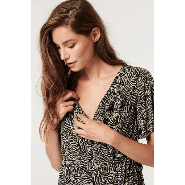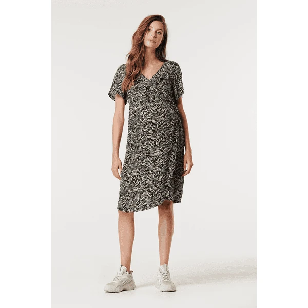 Ein Palmenmotiv ist immer schön für Sommertage! Dieses Supermom-Kleid hat kurze Ärmel und einen praktischen Einschlag mit Schleife. Dadurch ist das Kleid auch zum Stillen geeignet. Der Viskosestoff ist weich und luftig, das ideale Kleid zum Bummeln!Wir möchten Ihnen das Stillen so einfach und angenehm wie möglich machen. Bei diesem Kleid können Sie sofort mit dem Stillen beginnen, da Sie den Stoff nur zur Seite schieben müssen. Darunter befindet sich kein separates Pflegepanel.Sie lieben das Palmenmotiv? Wir haben auch kurze Hosen, Oberteile und längere Kleider!